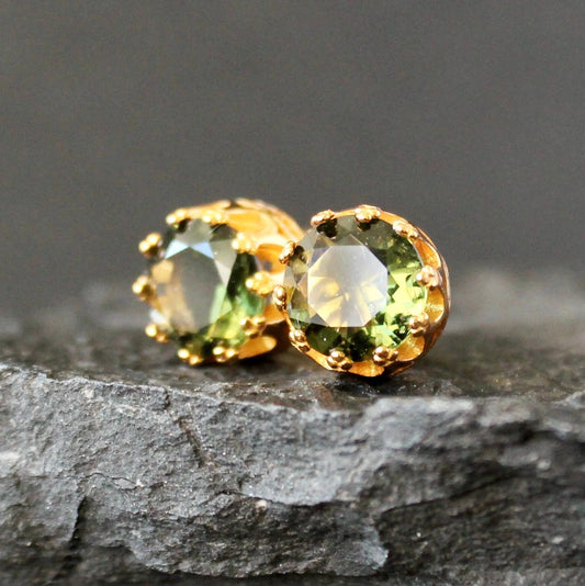 CZECH MOLDAVITE Earrings 5mm Gold Plated Silver jewelry real Moldavite Stud Earrings, genuine moldavite earrings Moldavite jewelry earrings