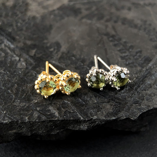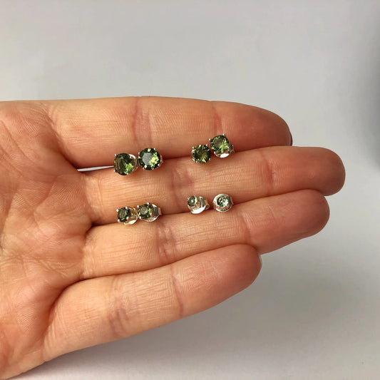 CZECH MOLDAVITE Faceted Stud Earrings 5mm, 6 mm Sterling Silver jewelry Czech Republic Moldavite, genuine czech moldavite gemstone earrings