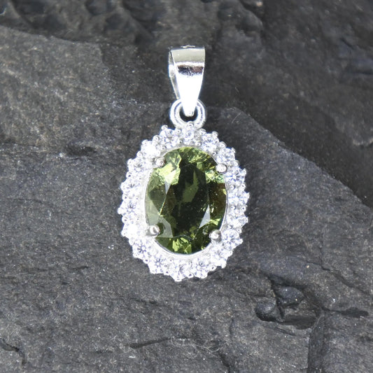 9mm stone CZECH MOLDAVITE Pendant Sterling Silver Moldavite jewelry- real moldavite necklace Genuine moldavite necklaces Authentic moldavite