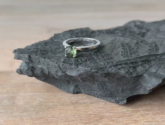 Sterling Silver Moldavite Ring 6mm stone, Authentic Moldavite jewelry- Czech Genuine Moldavite gemstone ring, Natural moldavite ring silver
