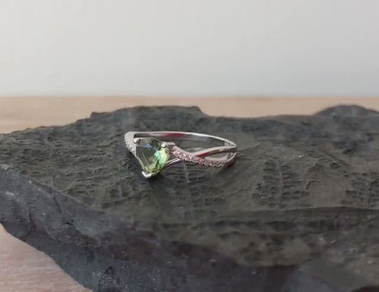6mm Heart Faceted Moldavite stone Silver ring, real moldavite ring- Czech moldavite jewelry, genuine moldavite ring authentic moldavite ring