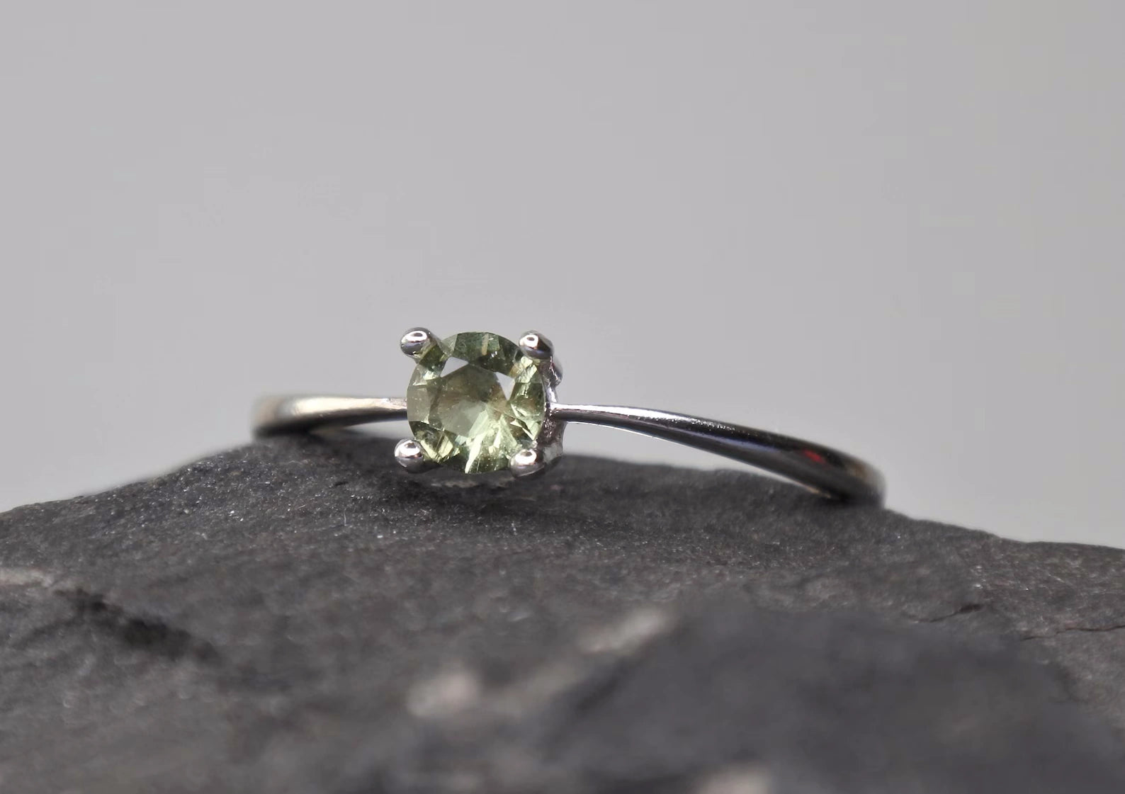 Genuine moldavite ring 4mm stone, real Moldavite ring Silver, Czech moldavite ring with certificate Moldavite jewelry Moldavite wedding ring