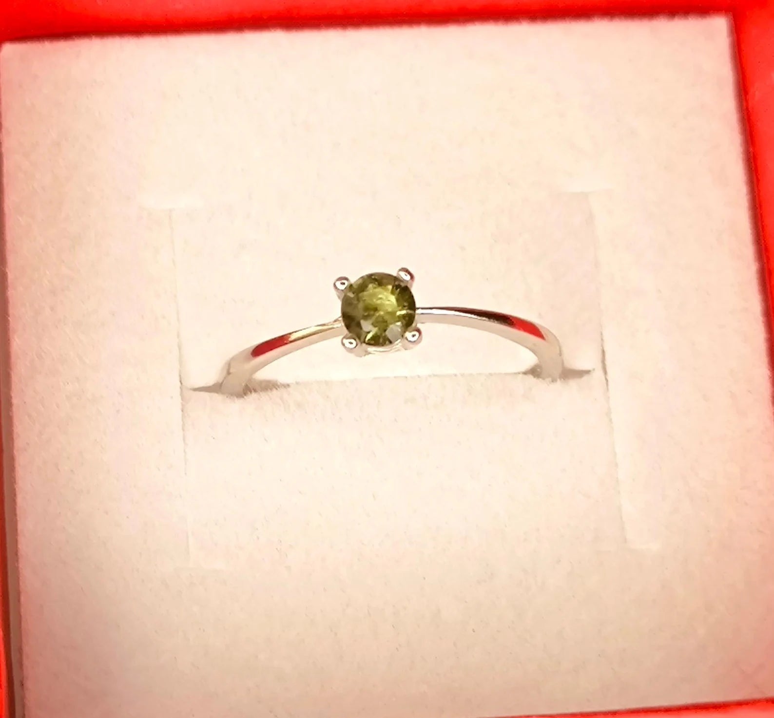 Authentic Moldavite ring- faceted moldavite ring 4 mm Rounds stone. 925 Sterling Silver moldavite ring. Jewelry made of the highest quality silver. It is free of nickel, cadmium and lead.