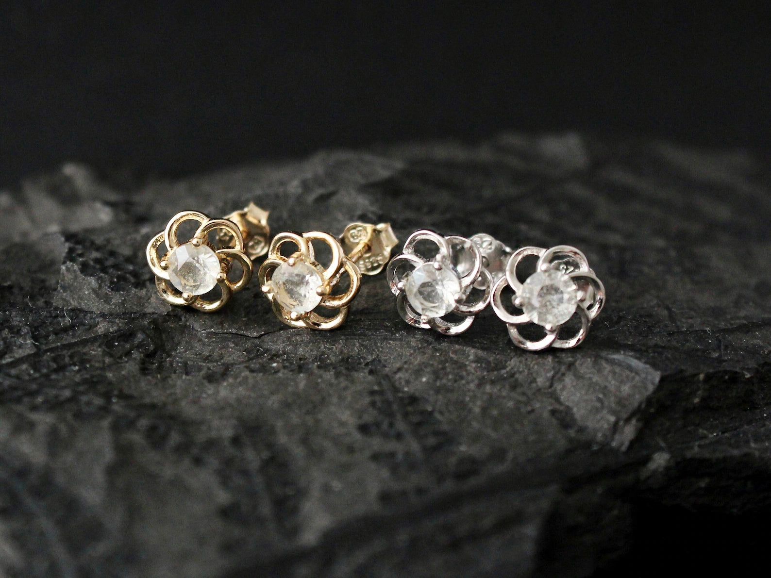 925 Sterling Silver earrings with butterfly backs. Gold plated is a sterling silver 925 coated with 18K gold.