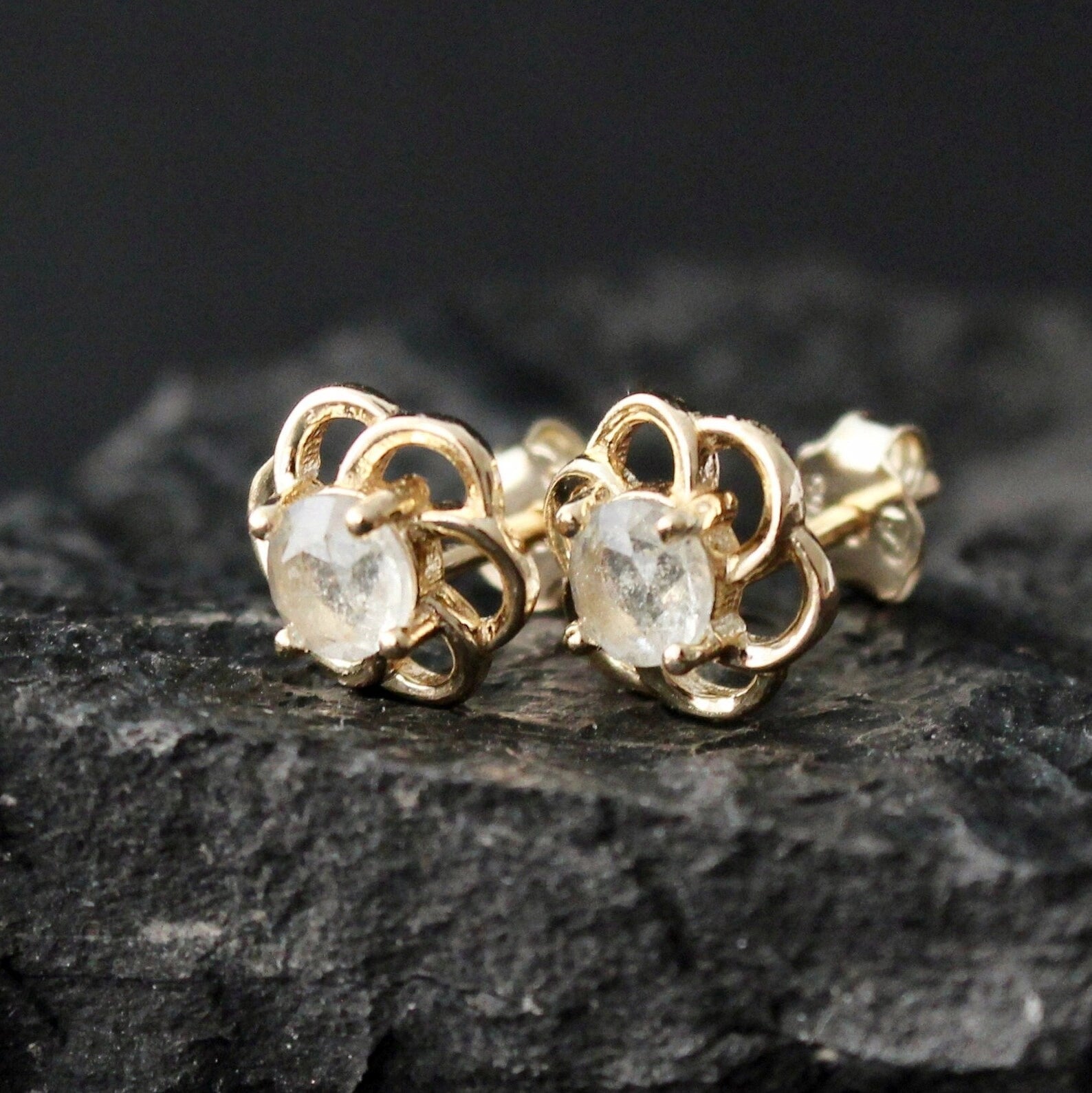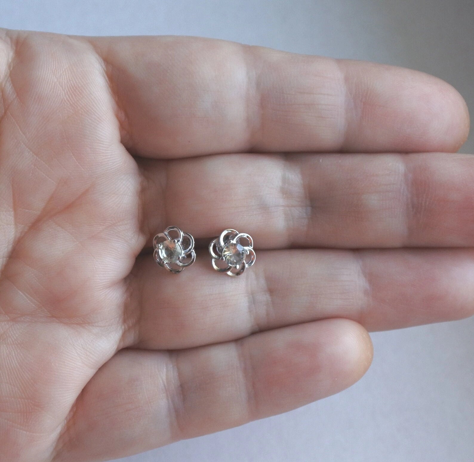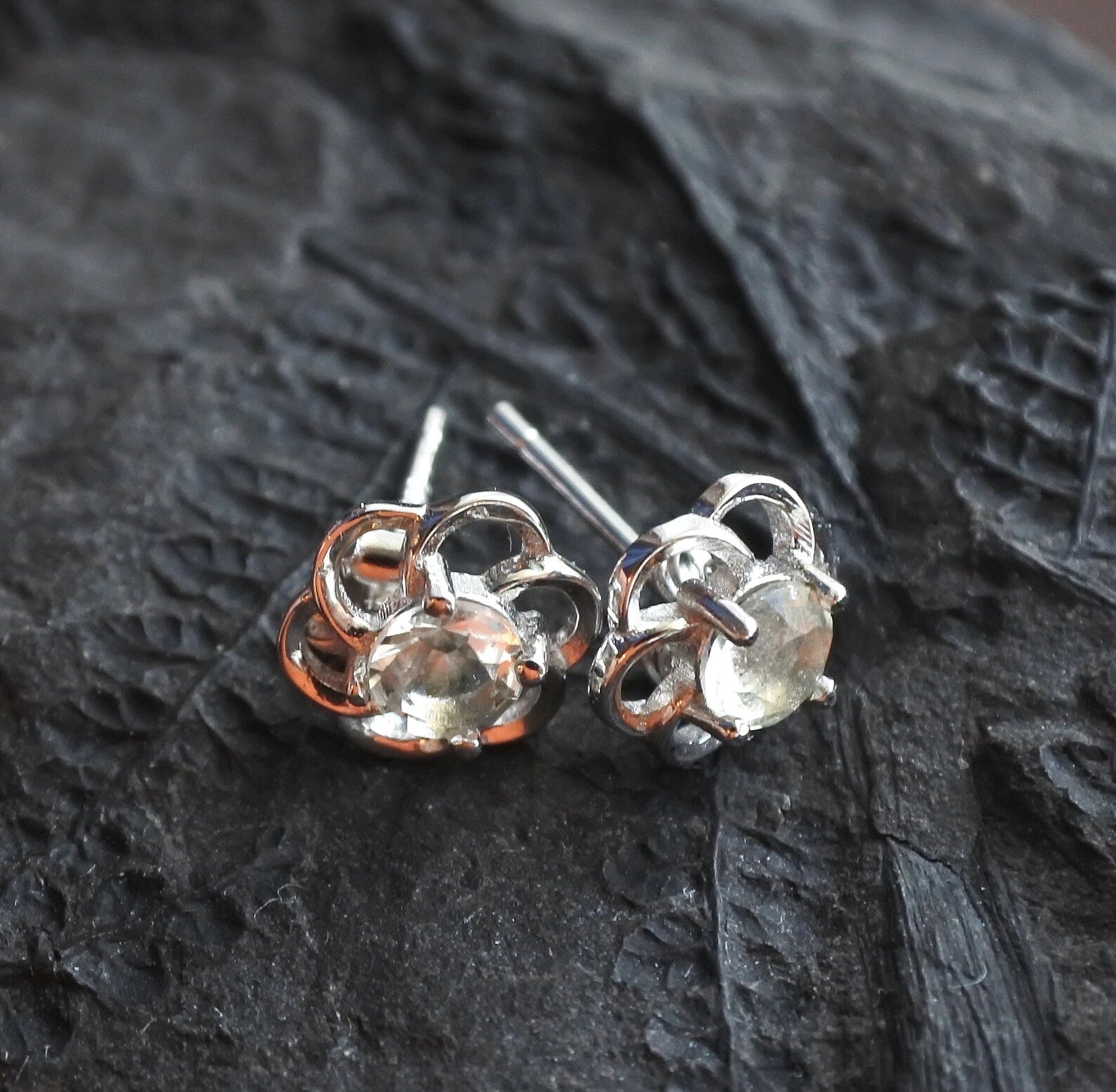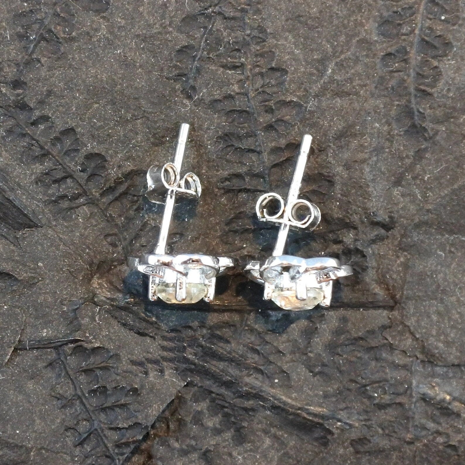Genuine Libyan Desert Glass Round Faceted Gemstone Stud Earrings 4mm stone Cut brilliant.