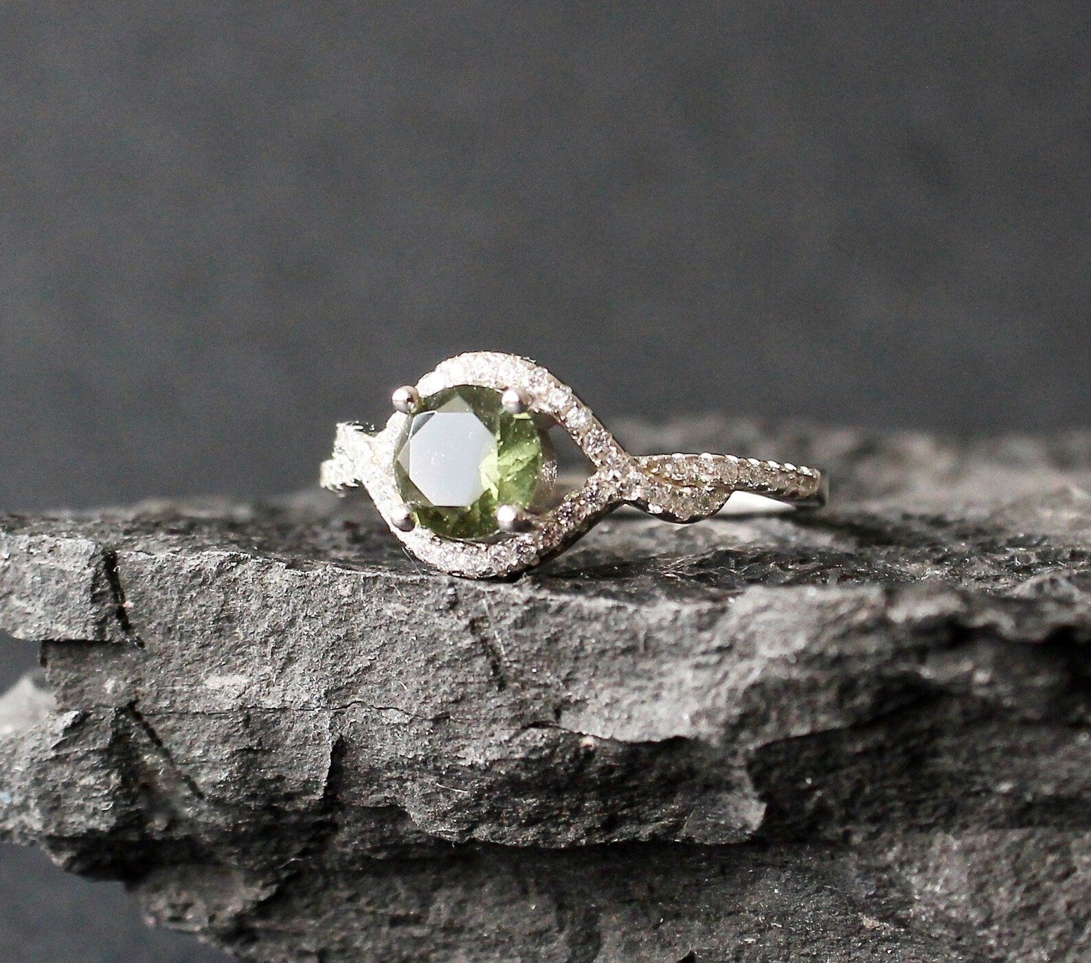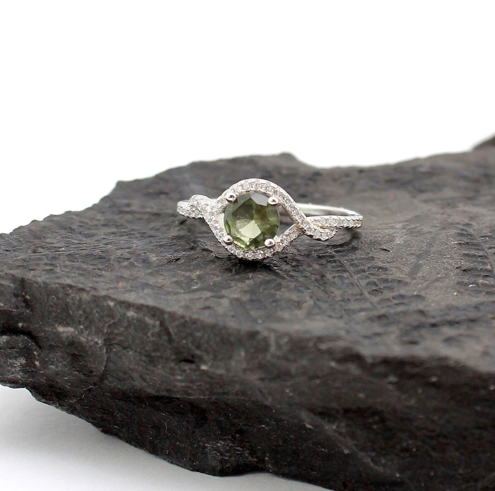 female moldavite ring: real MOLDAVITE ring silver, genuine moldavite ring with certificate- moldavite engagement ring, moldavite crystal ring.
