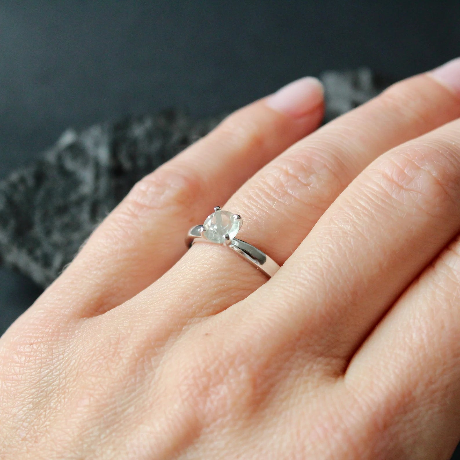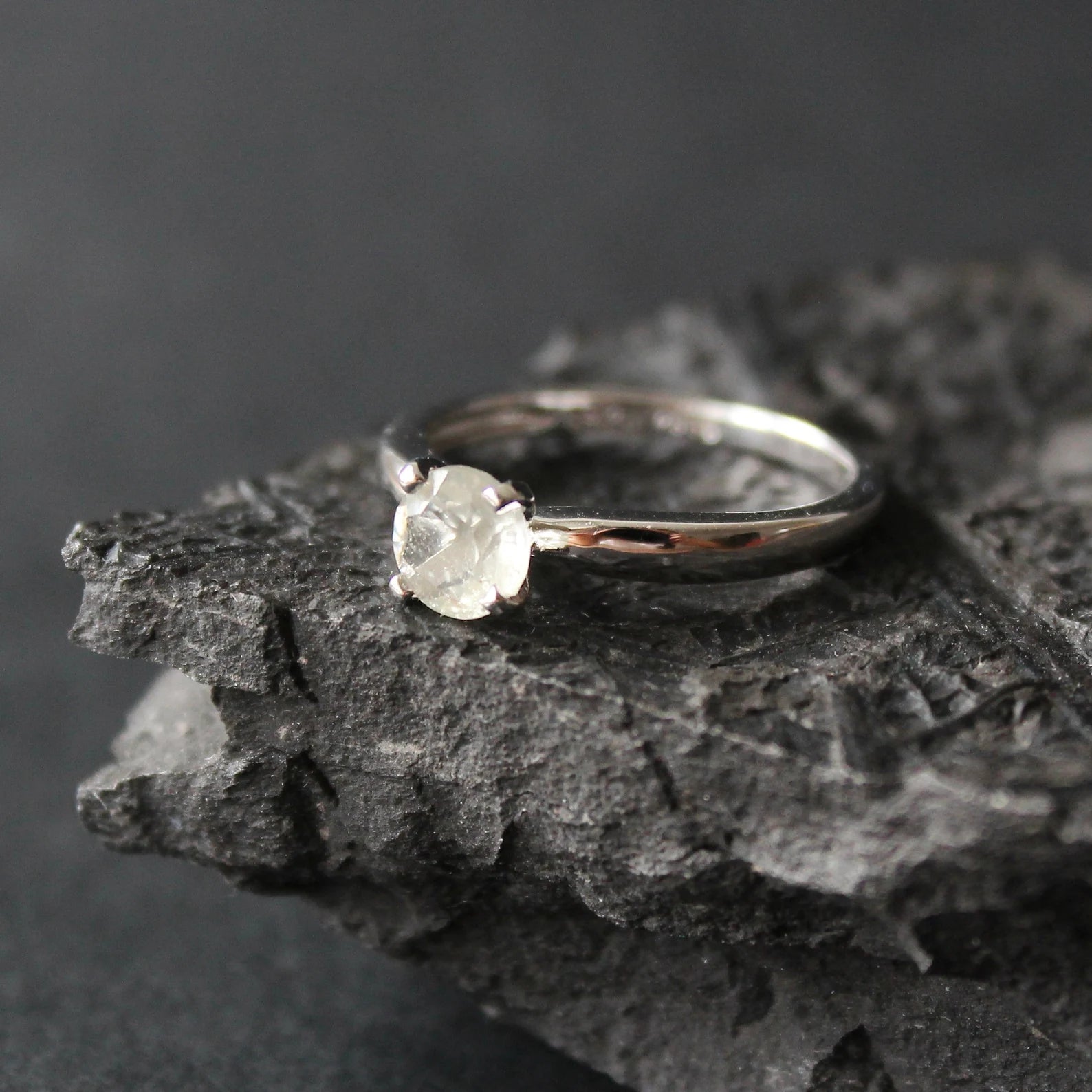 Libyan Desert Glass Faceted Silver ring 6 mm stone, Sterling Silver jewelry Libyan Glass, genuine Libyan Desert Glass gemstone ring LDG