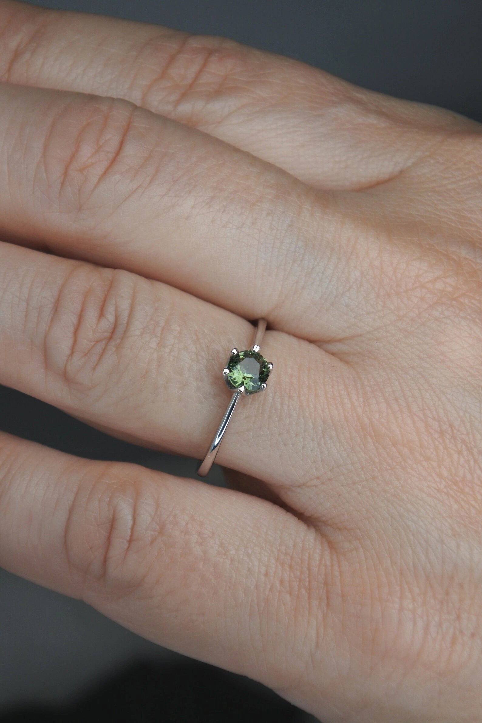 Authentic Moldavite ring- faceted moldavite ring 5 mm Rounds stone. 925 Sterling Silver moldavite ring. Jewelry made of the highest quality silver. It is free of nickel, cadmium and lead.