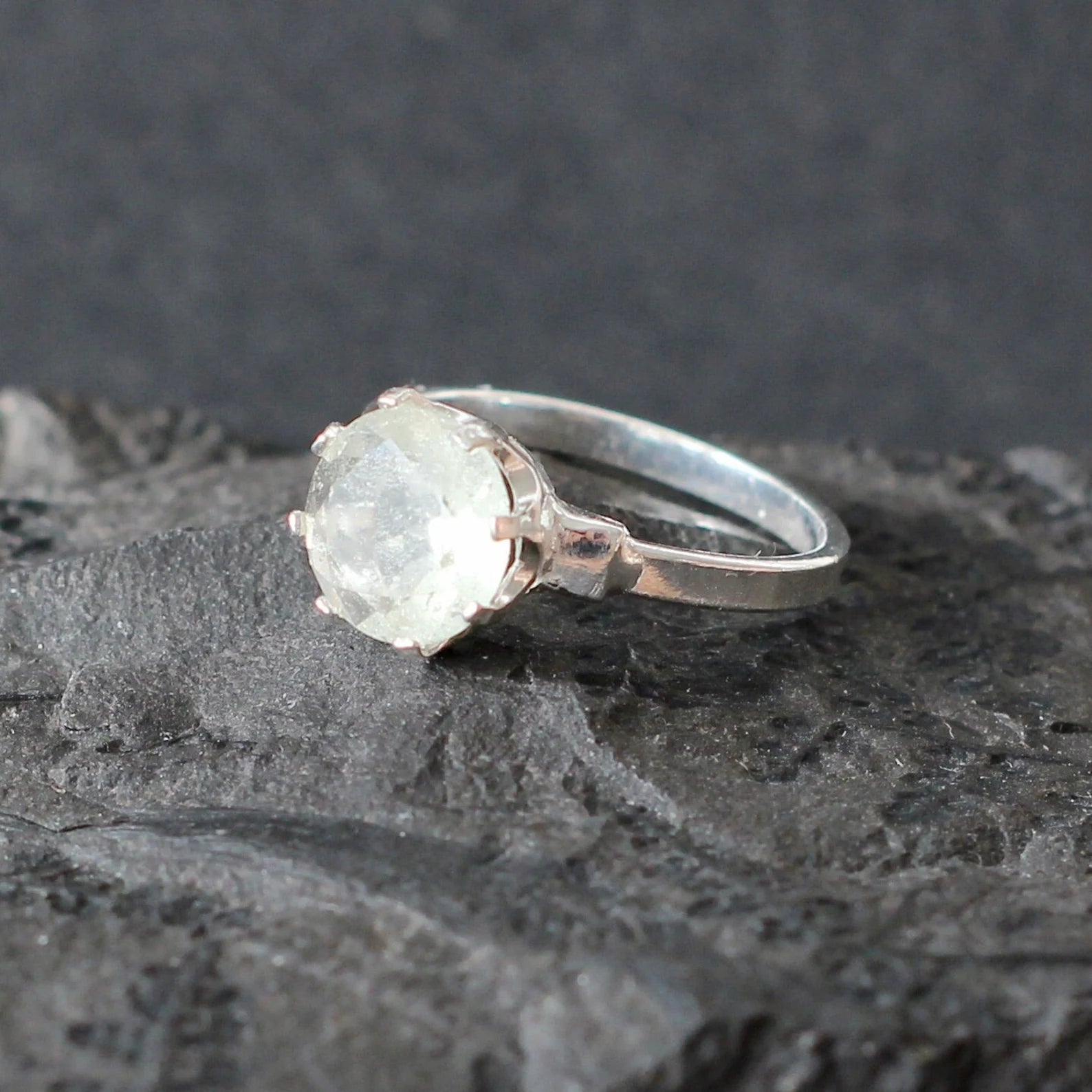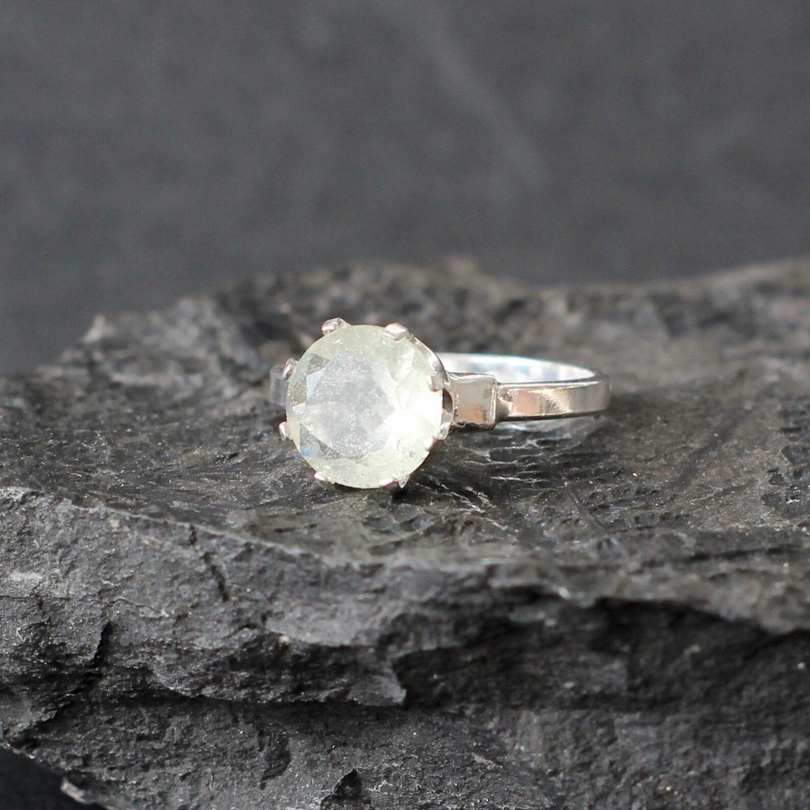 Libyan Desert Glass Faceted Silver ring 9 mm stone, Sterling Silver jewelry Libyan Glass, genuine Libyan Desert Glass gemstone ring LDG