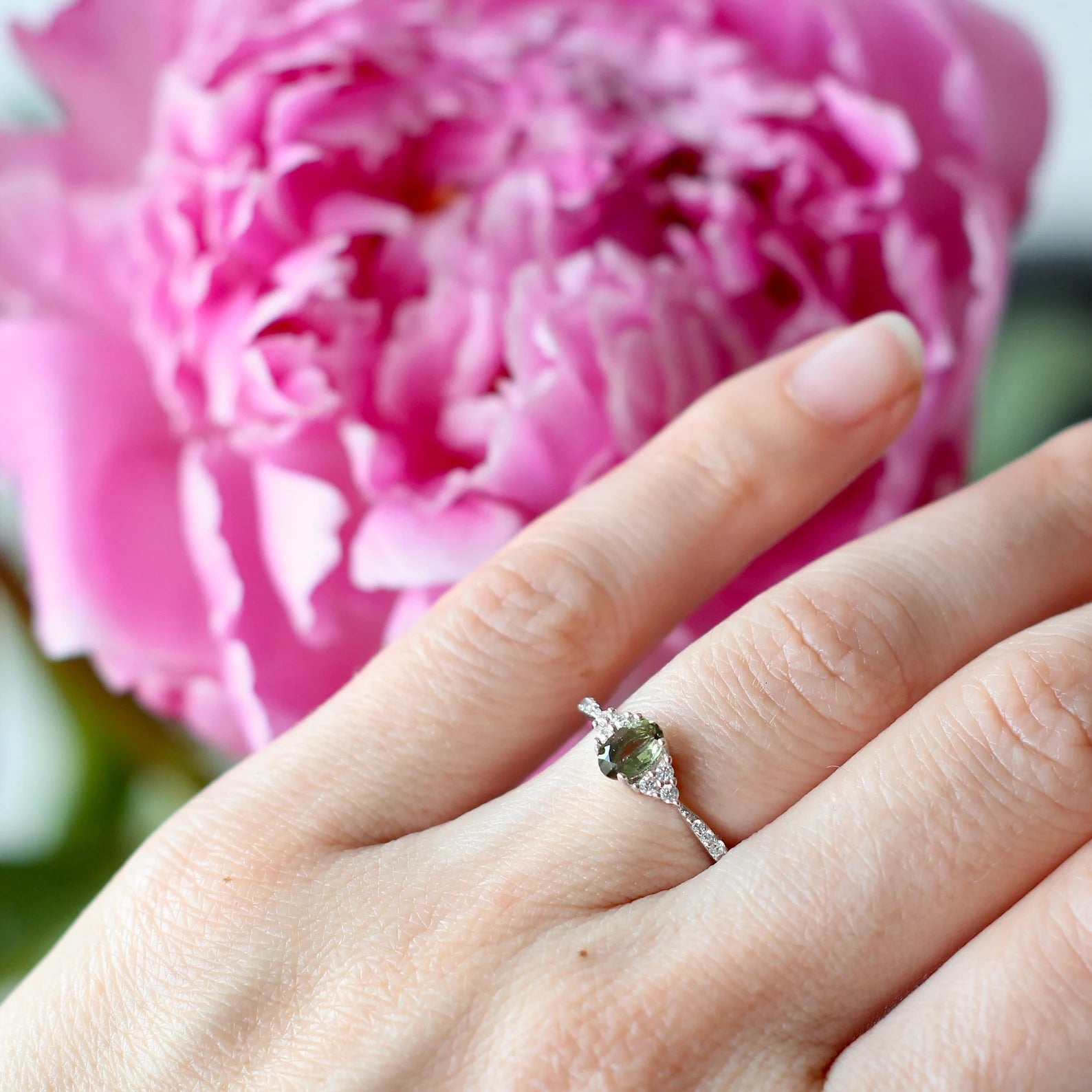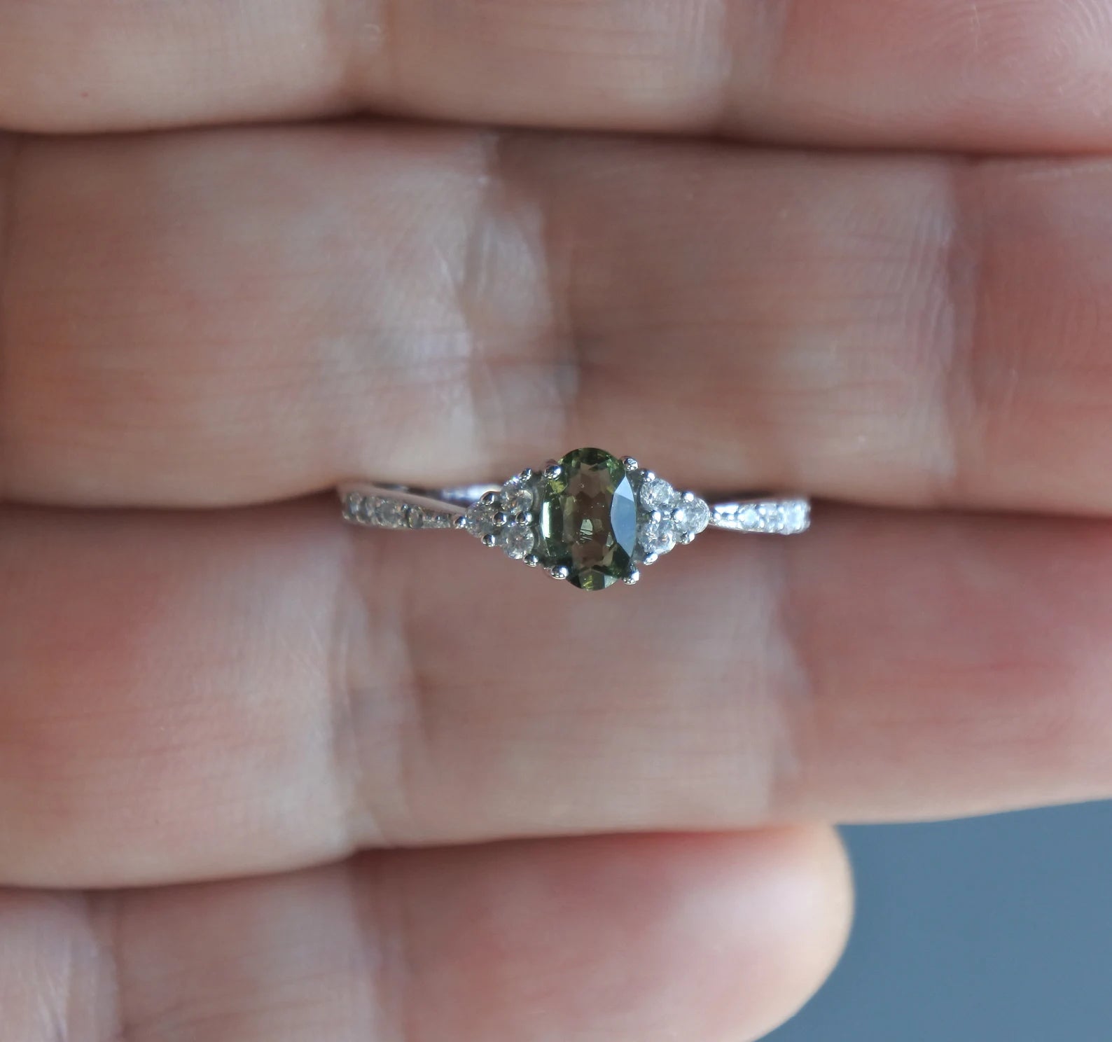Silver Moldavite Ring 4x6 mm stone, Authentic Moldavite jewelry- Genuine Moldavite gemstone ring, Faceted moldavite ring real moldavite gift