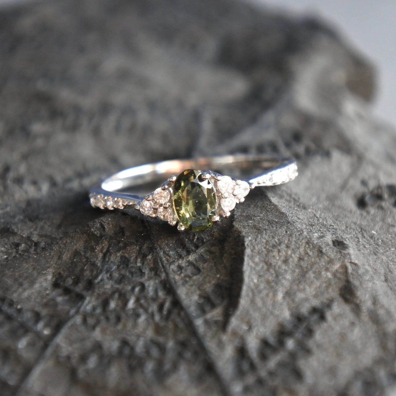 female moldavite ring: real MOLDAVITE ring silver, genuine moldavite ring with certificate- moldavite engagement ring, moldavite crystal ring