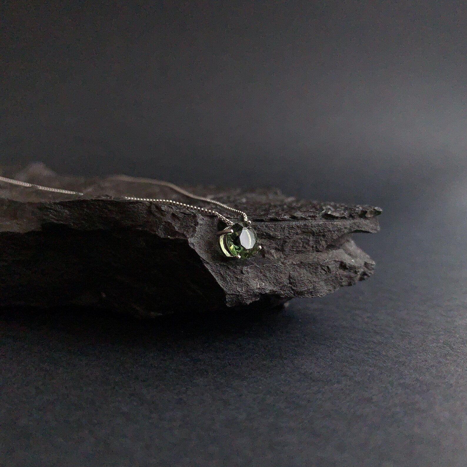 6mm stone MOLDAVITE Pendant Sterling Silver real Moldavite jewelry- CZECH moldavite necklace Genuine moldavite necklaces Authentic moldavite