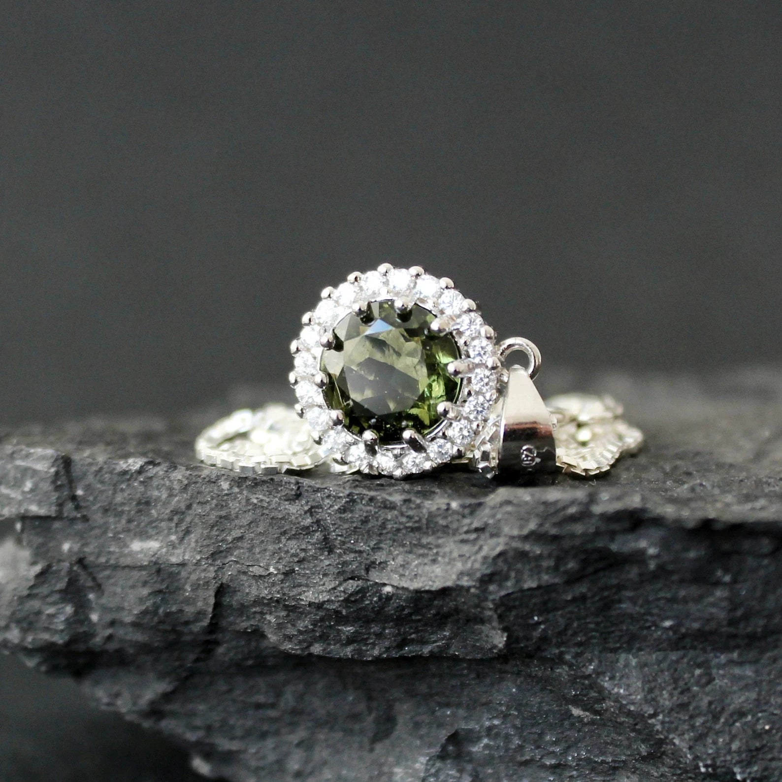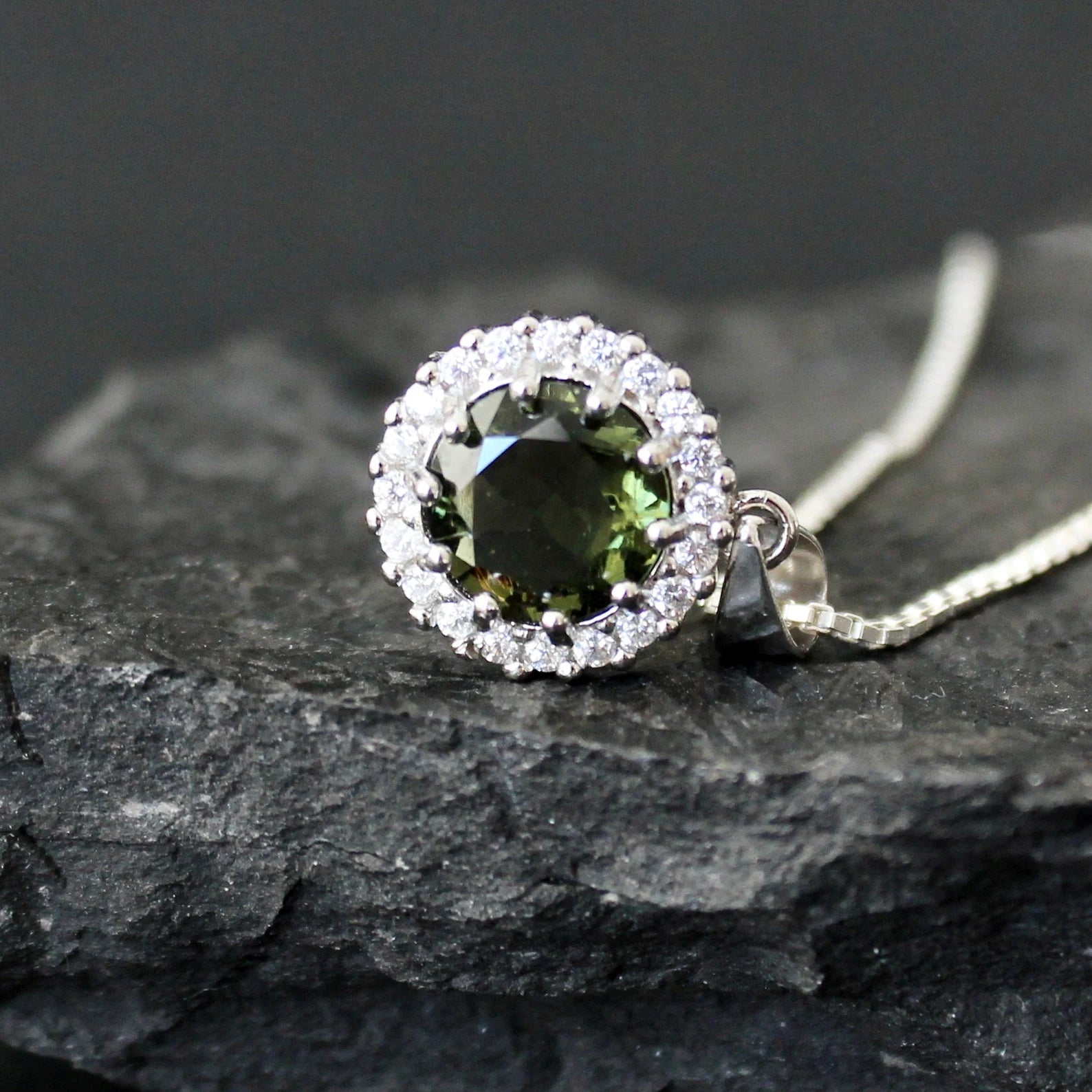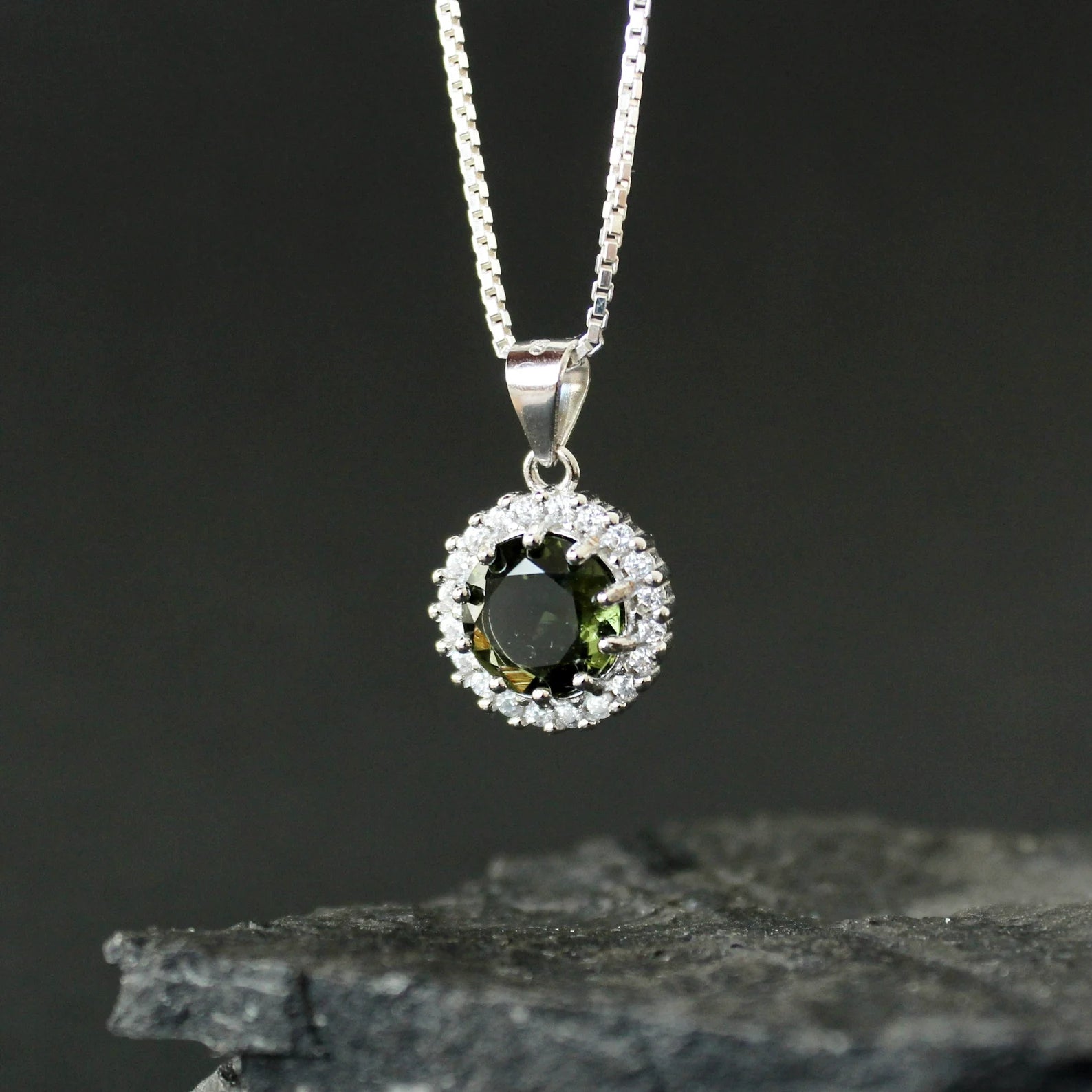 8mm stone Silver MOLDAVITE Pendant, Authentic Moldavite jewelry- Czech Genuine Moldavite necklace Real moldavite necklace moldavite crystal