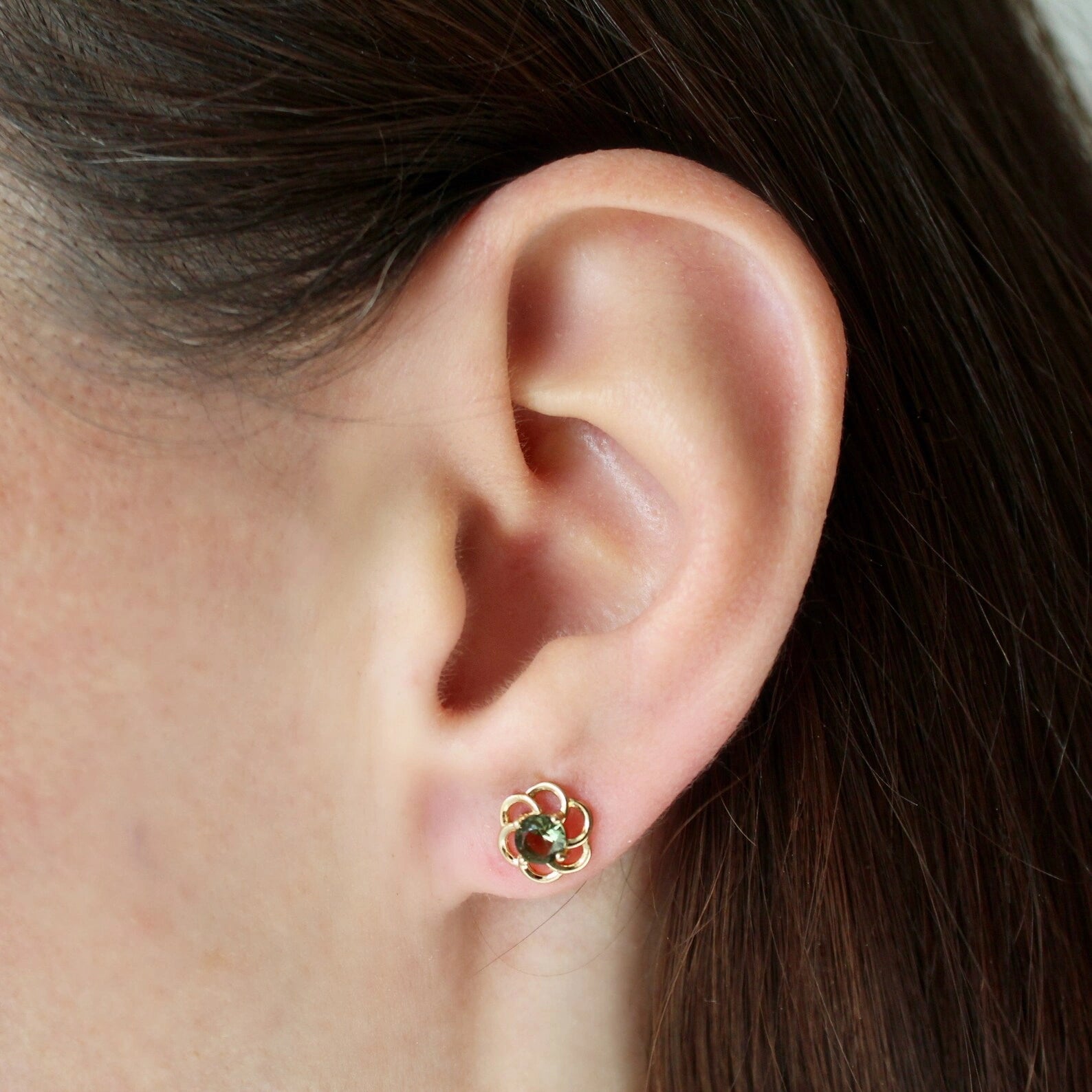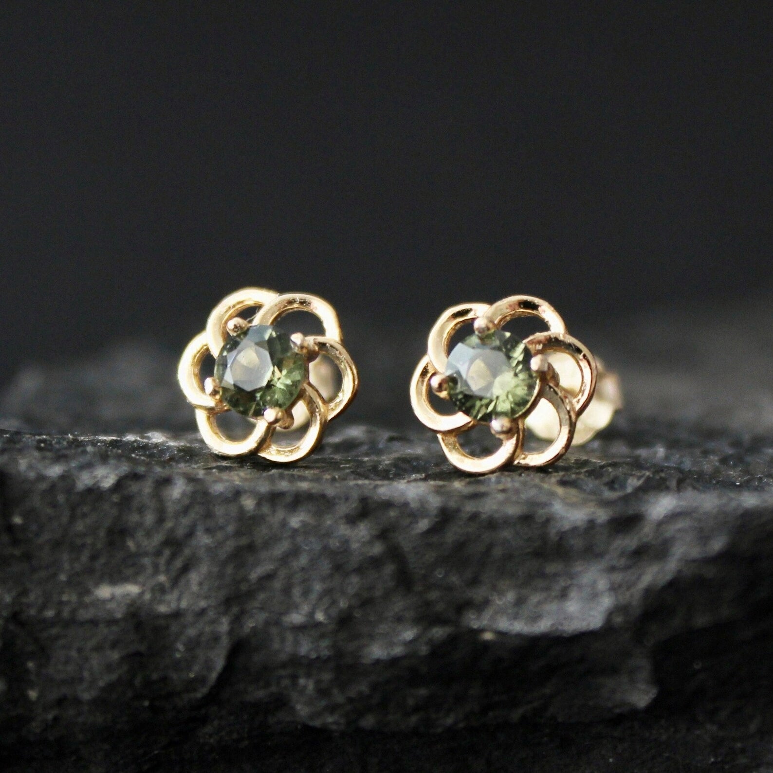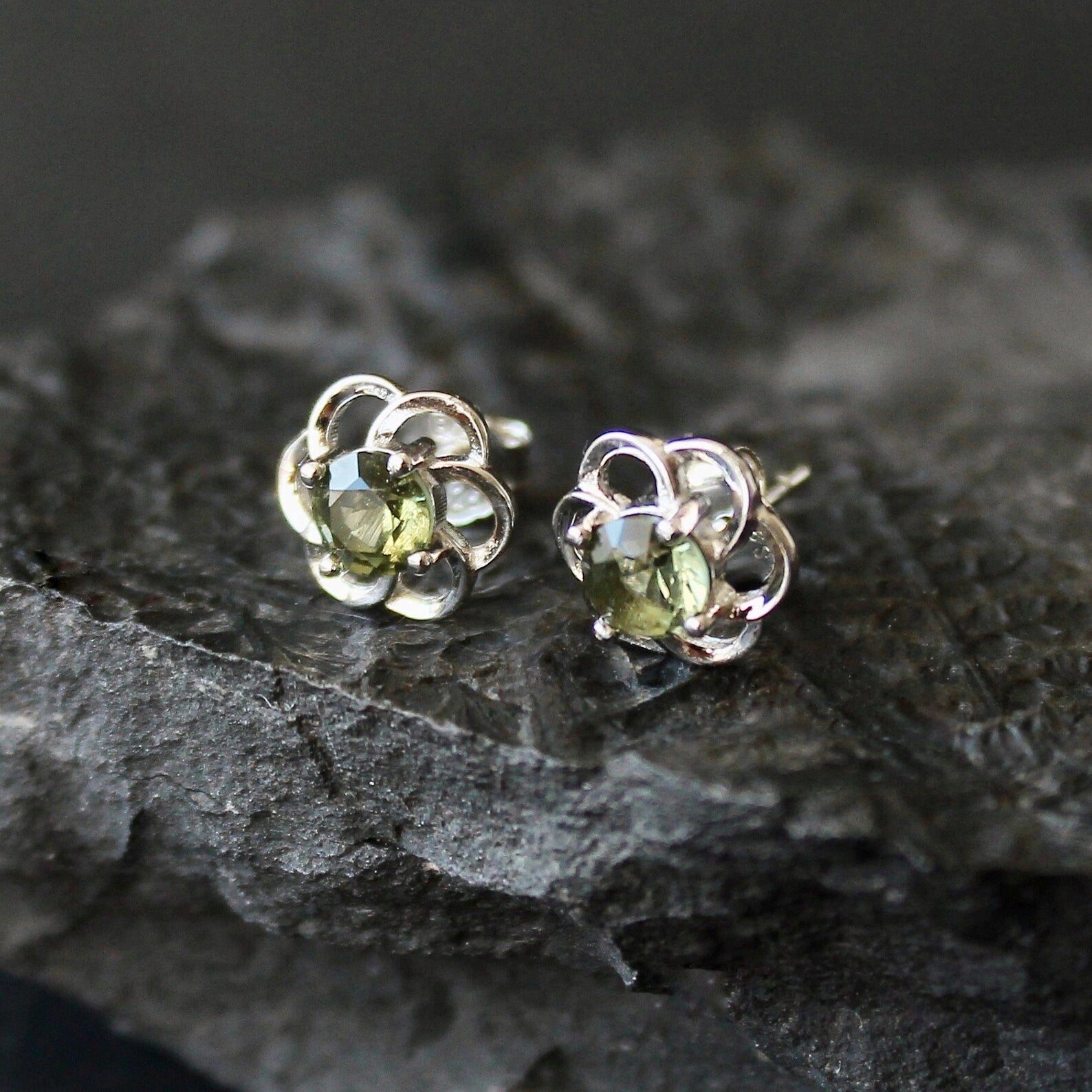 4 mm CZECH MOLDAVITE Faceted Earrings Sterling Silver jewelry Moldavite from Czech Republic, genuine czech moldavite gemstone earrings gift