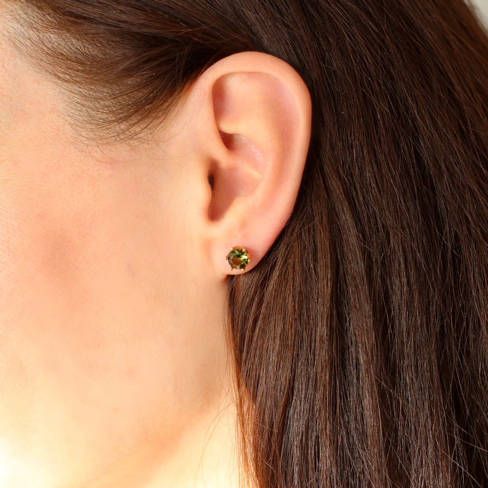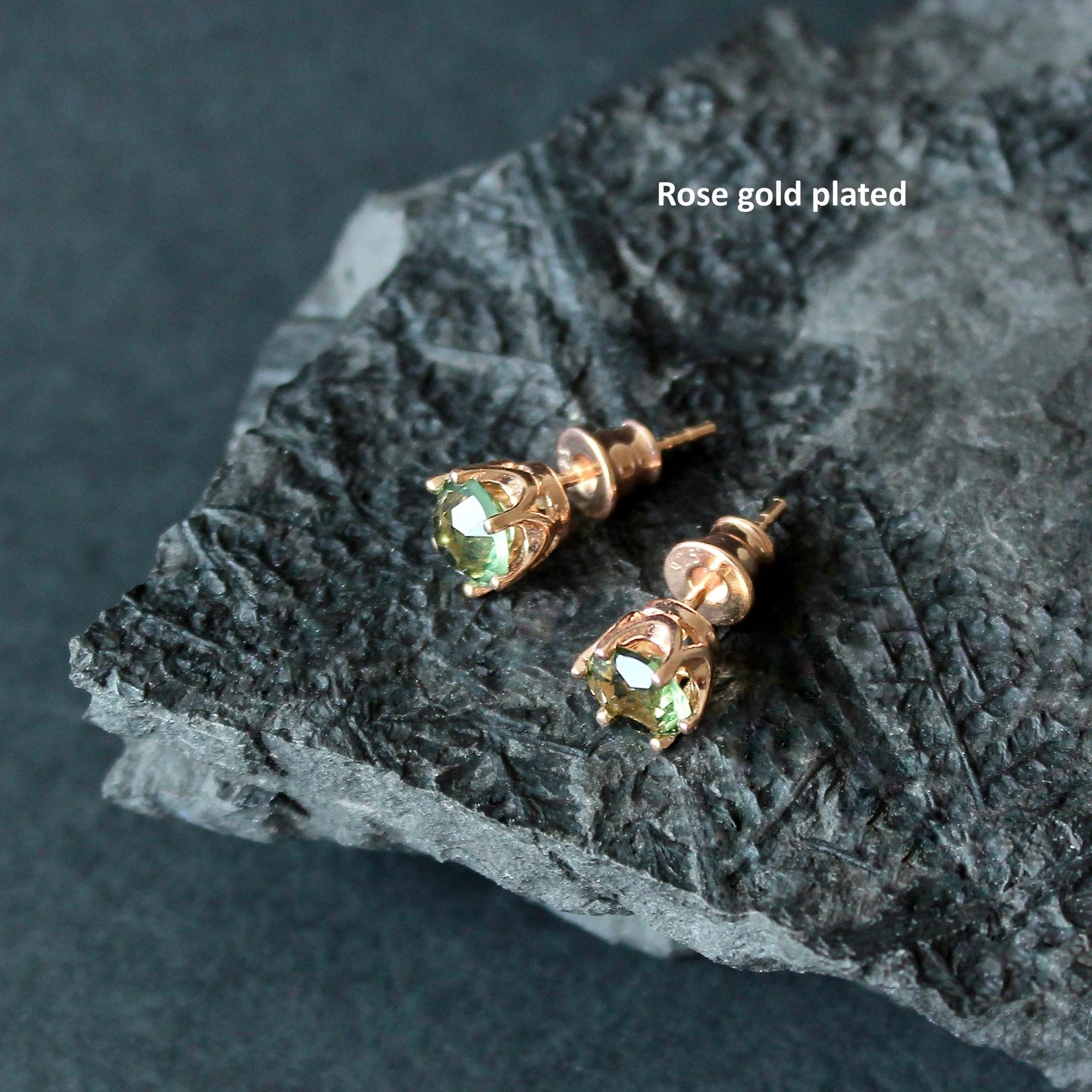 6 mm CZECH MOLDAVITE Earrings Sterling Silver jewelry real Moldavite Stud Earrings, genuine moldavite gemstone earrings Moldavite jewelry