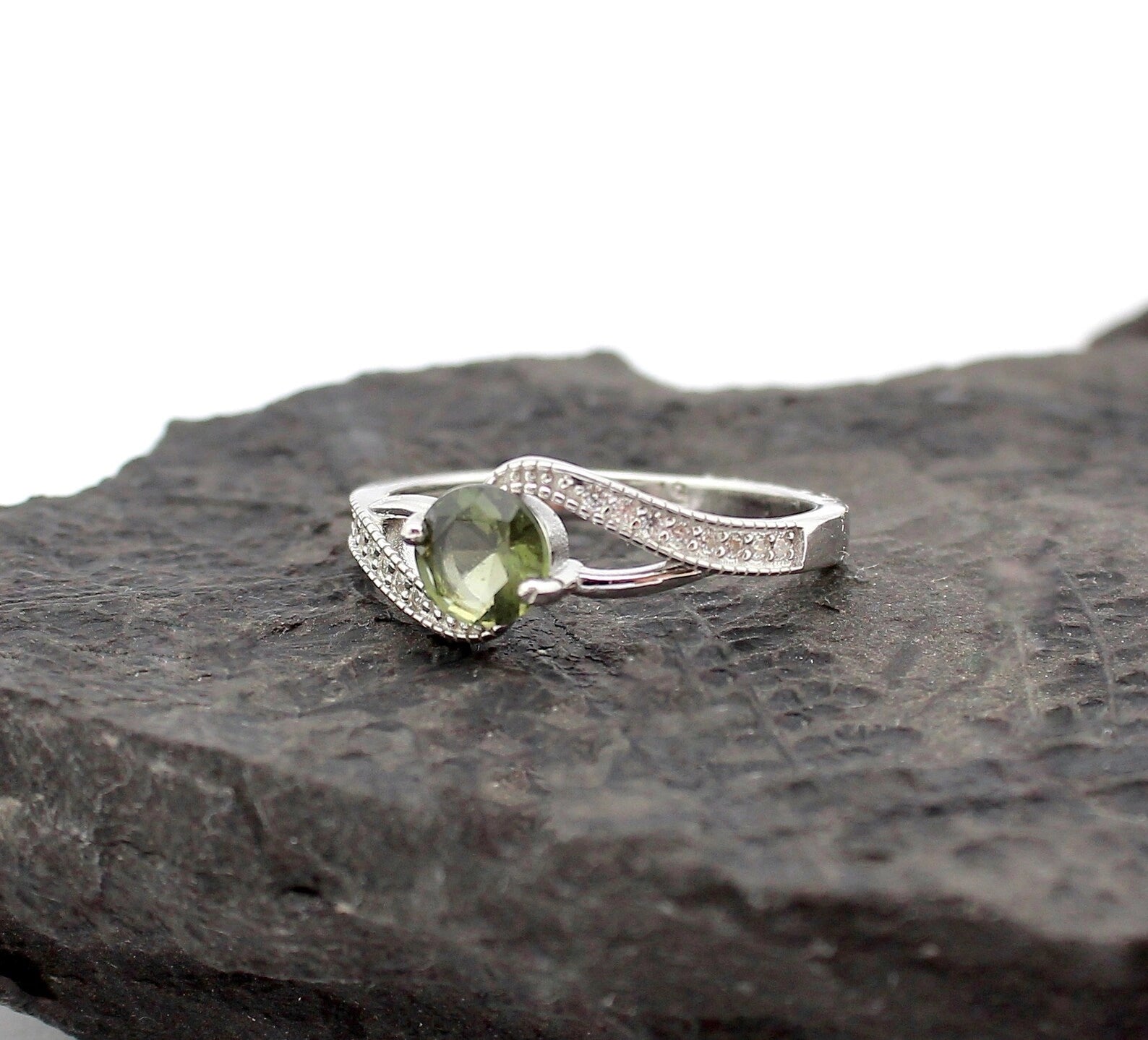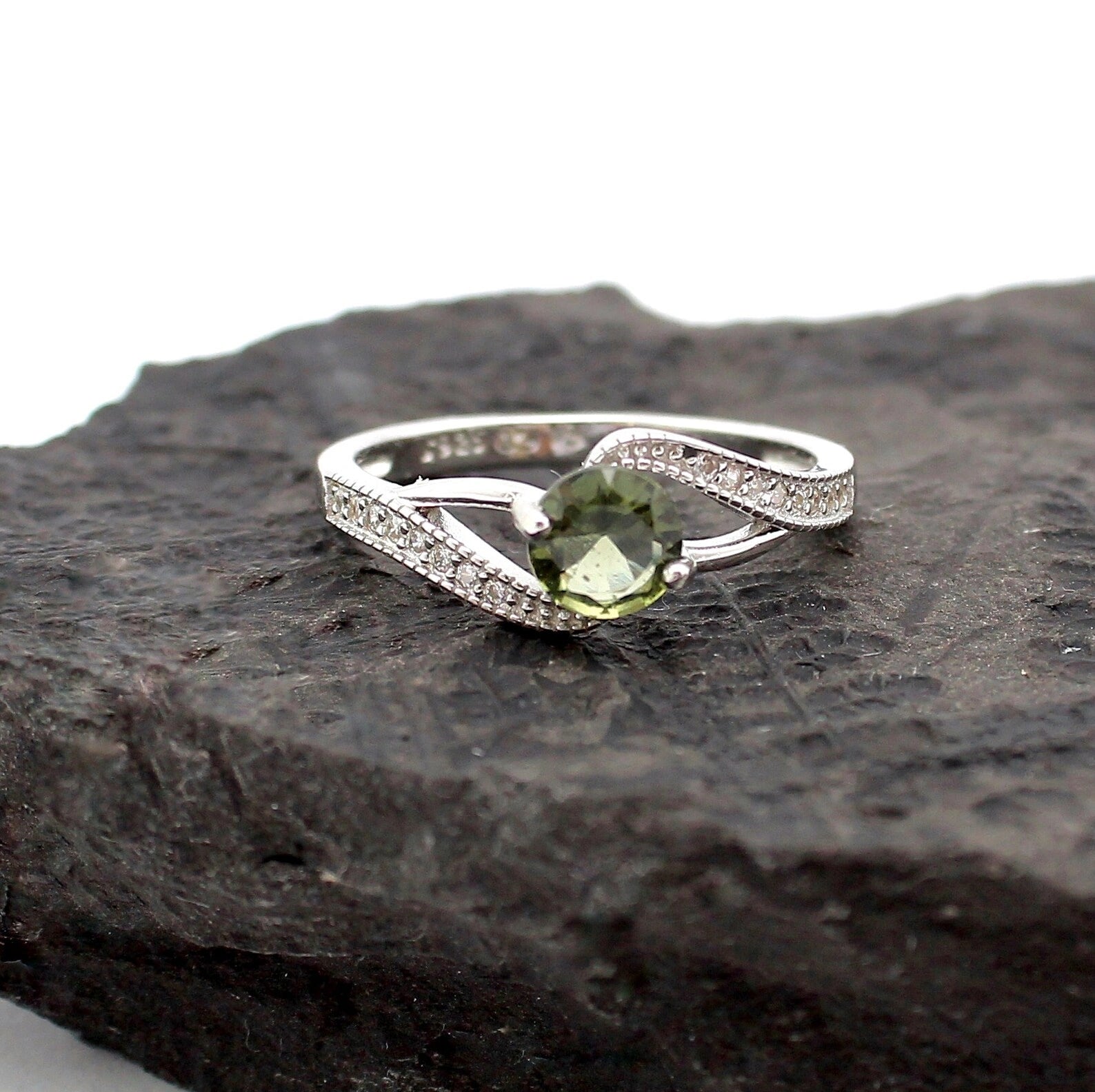 Authentic Moldavite ring- faceted moldavite ring 6 mm approx. 0.66 ct Rounds stone. 925 Sterling Silver moldavite ring. Jewelry made of the highest quality silver, known as the 925 in jewelry. It is free of nickel, cadmium and lead.