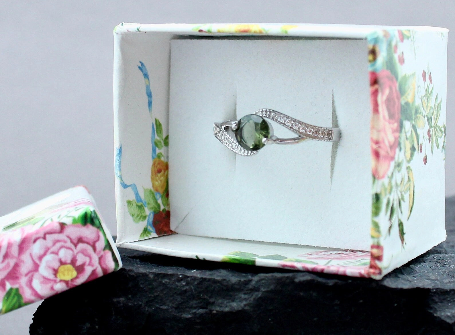 female moldavite ring: real MOLDAVITE ring silver, genuine moldavite ring with certificate- moldavite engagement ring, moldavite crystal ring.