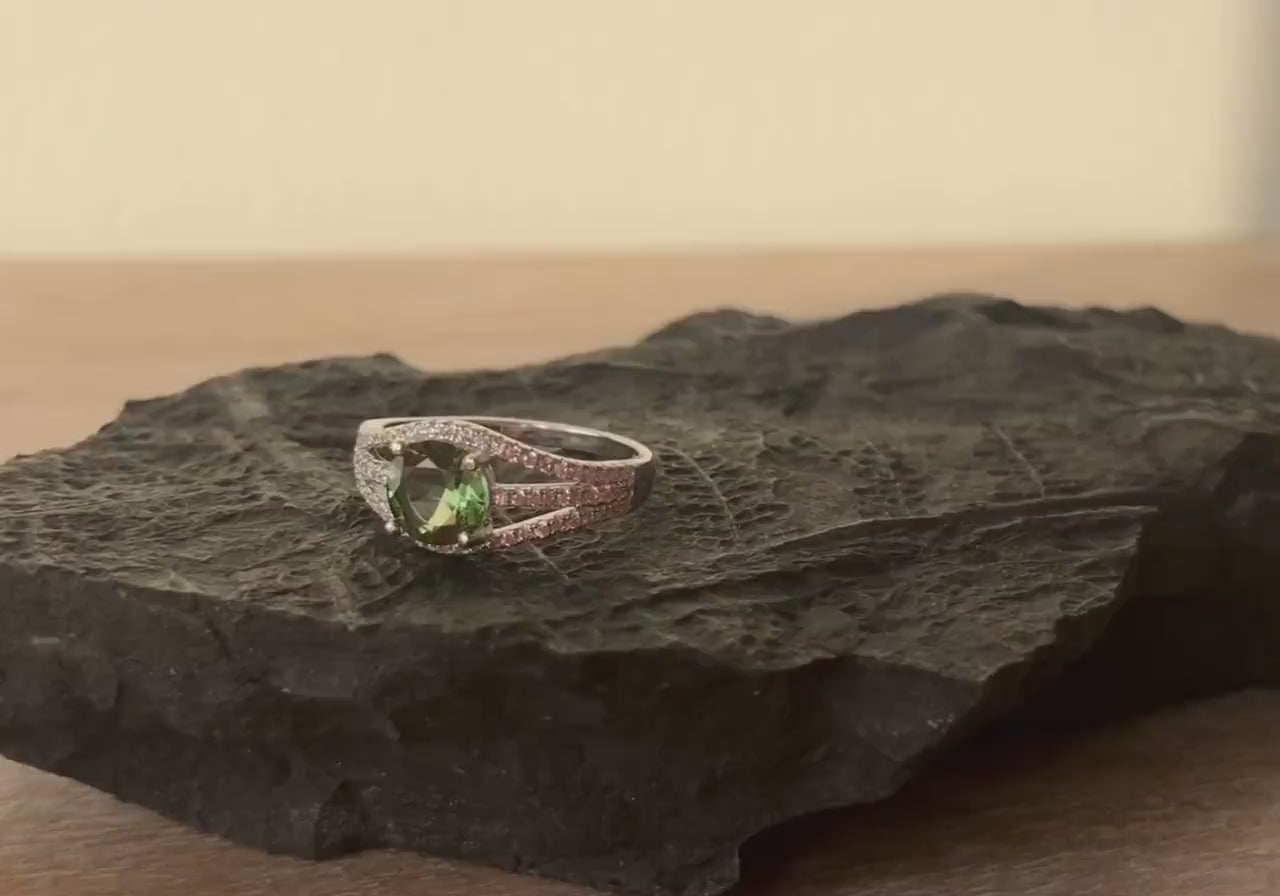 female moldavite ring: real MOLDAVITE ring silver, genuine moldavite ring with certificate- moldavite engagement ring, moldavite crystal ring.